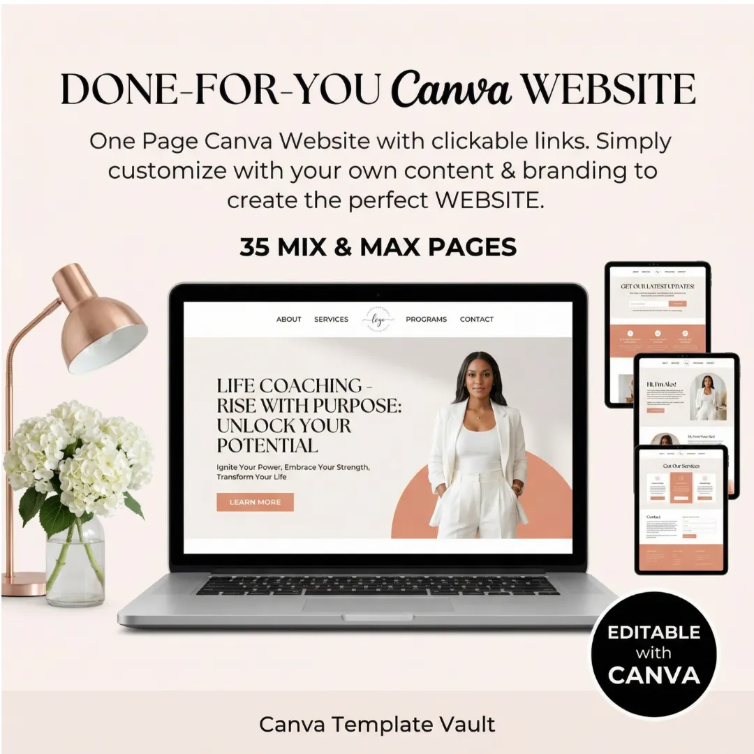 Done-for-you Canva website and course sales page templates ready to customize for your coaching business.